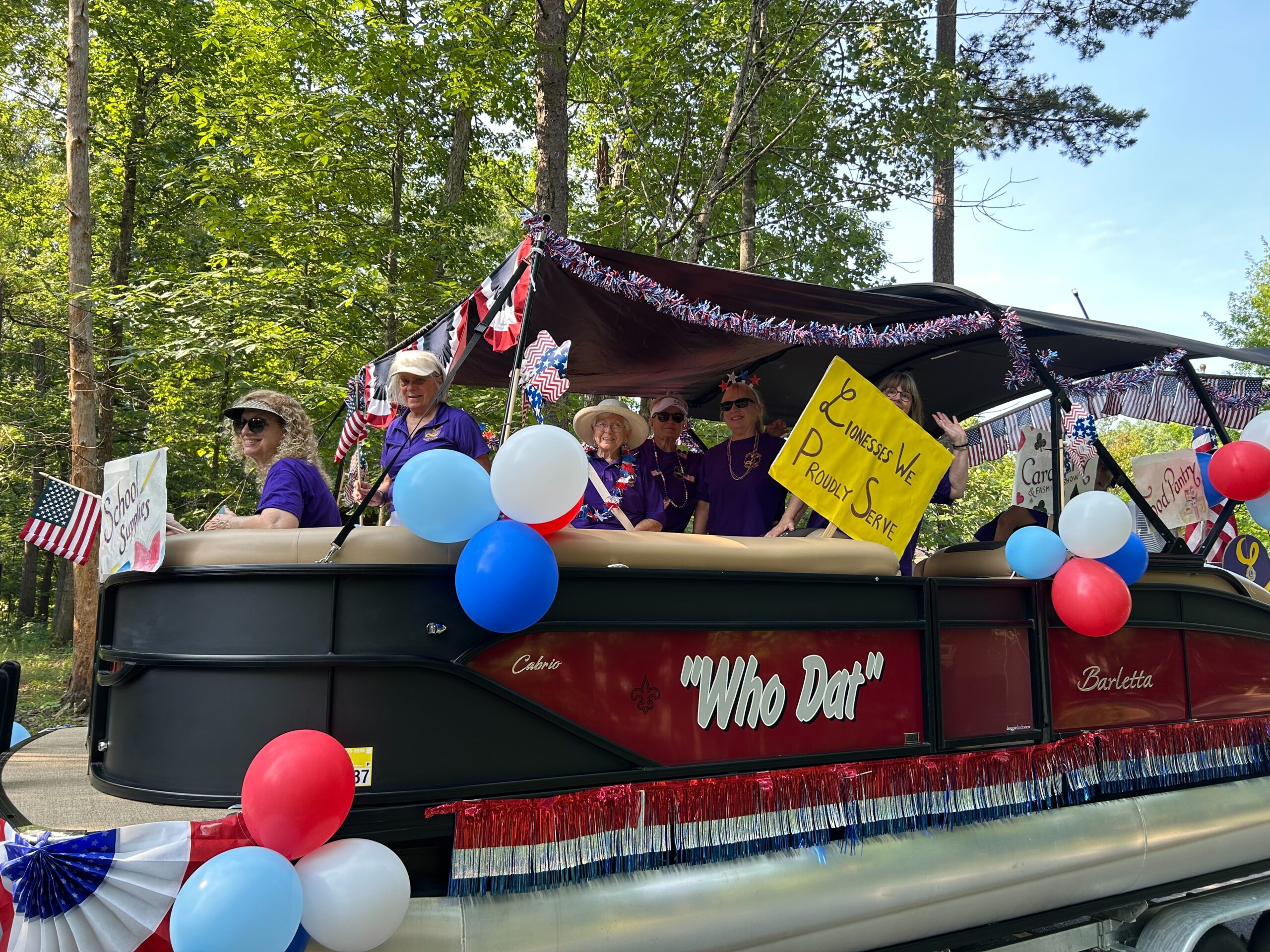 Eight Lioness women came together July 4th to decorate a tri-toon boat and truck and were declared winner of this year’s “Best Appearing” parade float. Rosemary Butcher (and husband Tony, boat owners), along with Julie Davis, Diane Wiard, Caroline Collantes, Colleen Cameron, Kathy Phillips, Arlene Rich and Susie Wright did a fabulous job decorating.